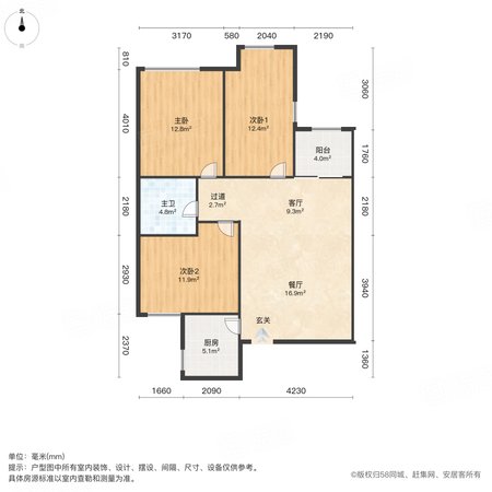 绿地西斯莱 3室1厅1卫 92.53㎡