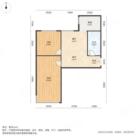 三合佳苑 2室1厅1卫 60.29㎡