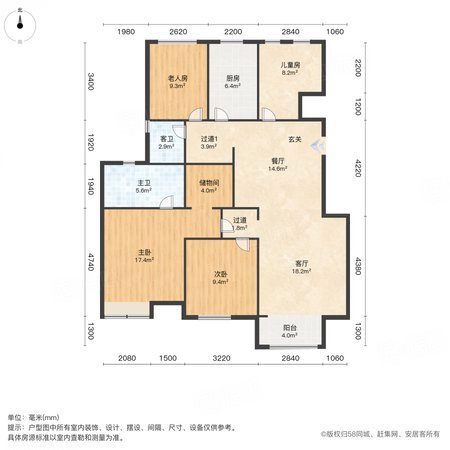 金地仰山(东区) 3室2厅2卫 140.74㎡