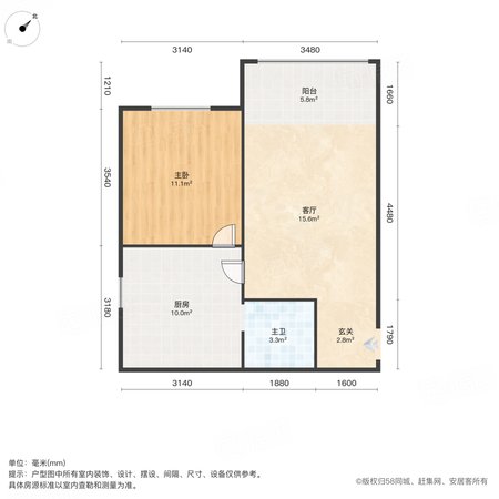 彩虹新城 1室1厅0卫 63.67㎡
