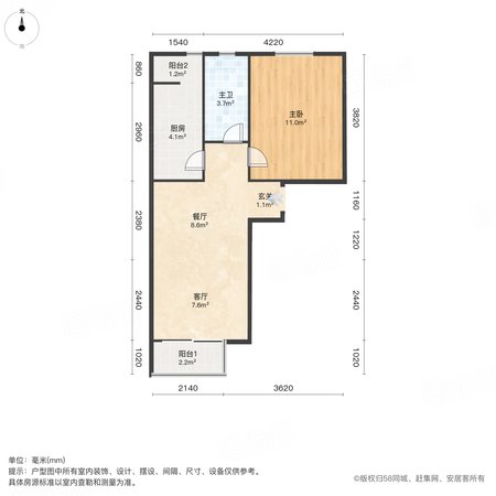 三合北巷7号院 1室1厅1卫 57.49㎡