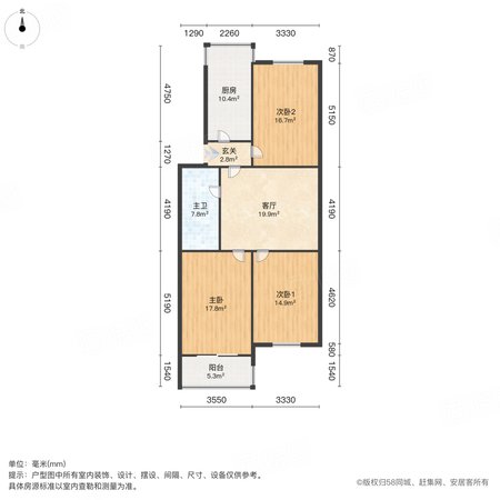 东关南里 3室1厅1卫 105.89㎡