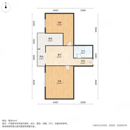 富强东里 2室1厅1卫 58.01㎡