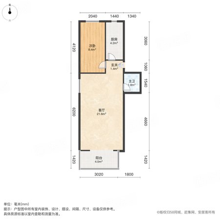 录科胡同小区 2室1厅1卫 53.39㎡