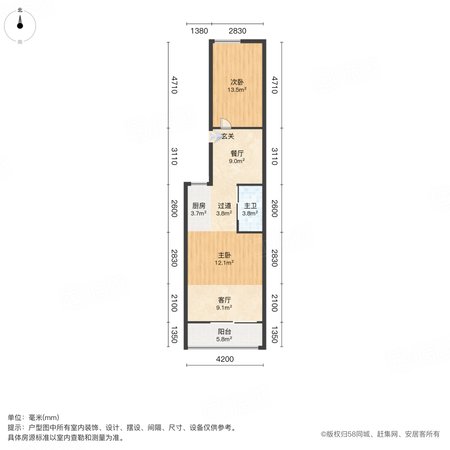 车站北里 2室1厅1卫 58.89㎡